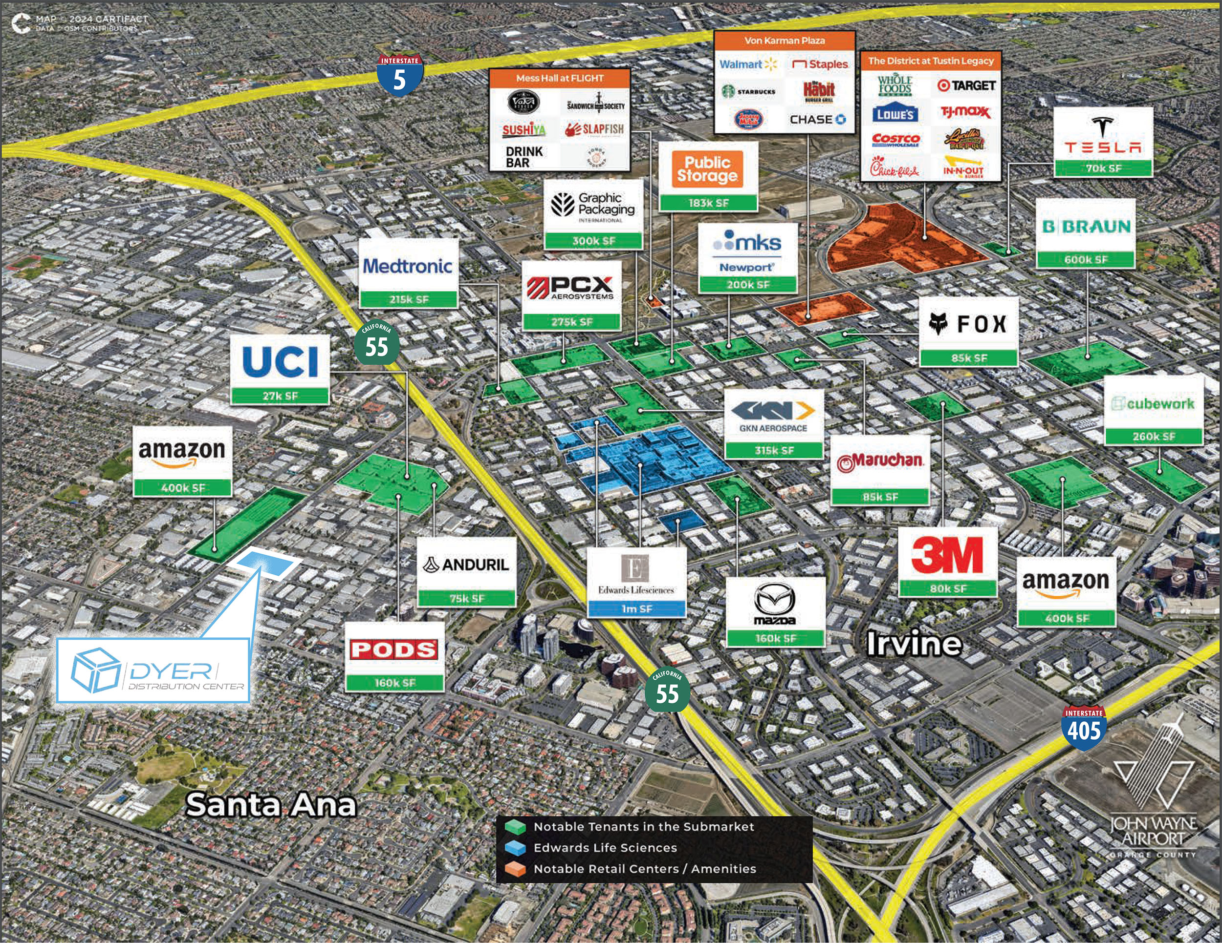 Dyer Distribution Center is located at 300 E. Dyer Road in Santa Ana, California featuring easy access to the Coast Mesa (55), San Diego (405) and Santa Ana (5) freeways.